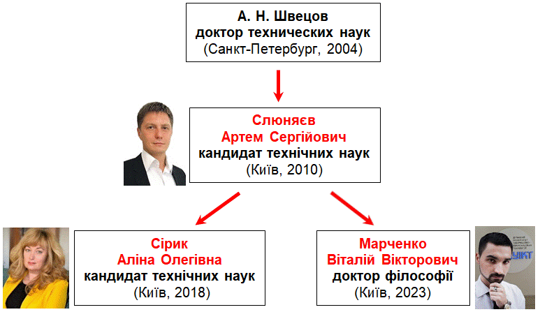 Розділи 2.1, 2.2, 2.3, 3.1, 4.1 і 4.2 дисертації Сірик – це відповідно такі самі розділи 2.1, 2.2, 2.3, 3.1, 4.1 і 4.2 дисертації Слюняєва, а висновки до розділів 2, 3 і 4 у Сірик – це насправді висновки до розділів 2, 3 і 4 з дисертації Слюняєва.