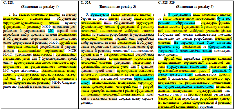 Ну, тобто зрозуміло: новий варіант дисертації значно відрізняється від попереднього тим, що тест був перероблений і став набагато менше нагадувати джерела, з яких переписувався, хоча рисунки (наприклад, 3.3, 3.4, 3.5) як були нахабно передрані без згадки справжнього автора, так і залишилися.