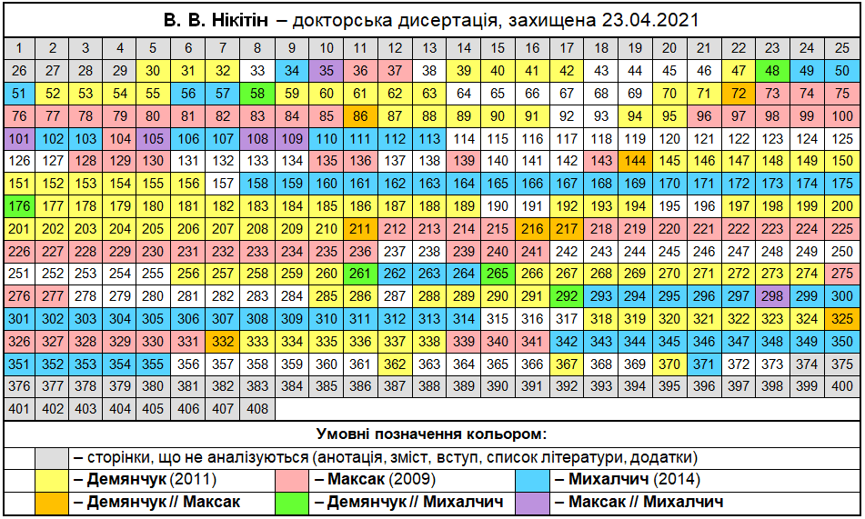 261 сторінка плагіату з 344 сторінок основного тексту, тобто 76%.