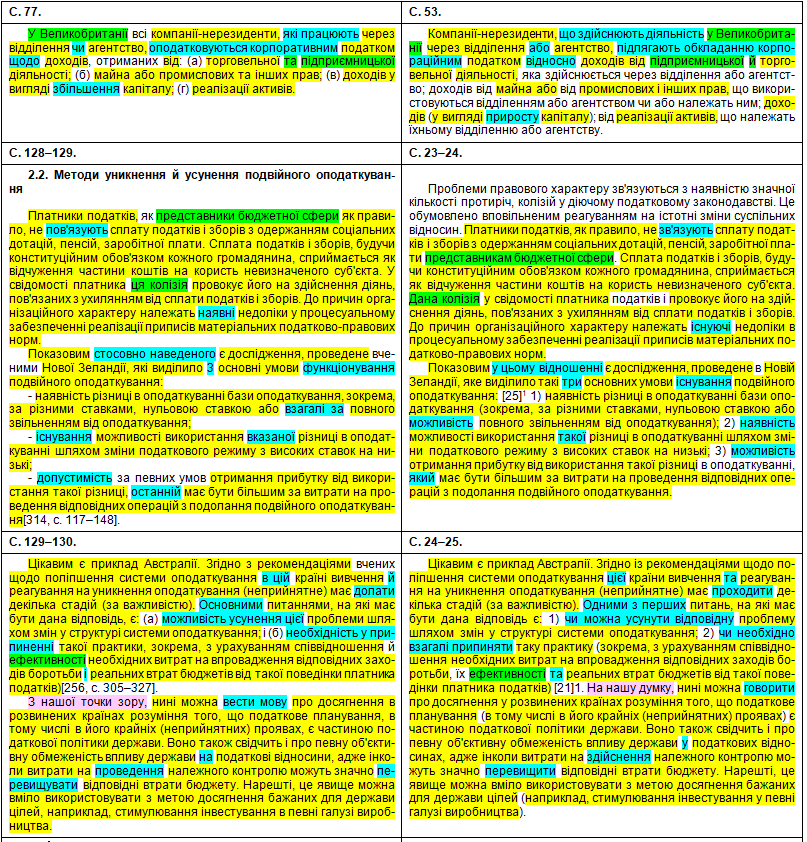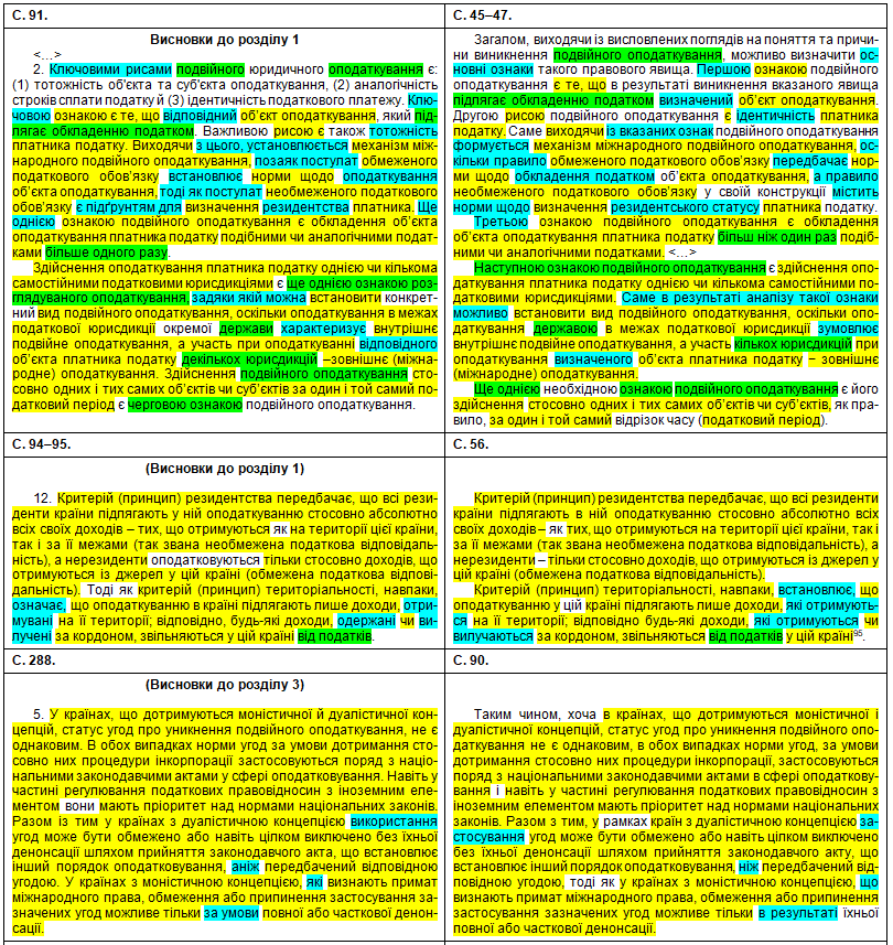 1) Демянчук Ю. Г. Організаційно-правові засади уникнення міжнародного подвійного оподаткування в Україні. – Дис. … кандидата юридичних наук (спец. 12.00.07 – адміністративне право і процес; фінансове право; інформаційне право). – Острог, 2011 (див. тут).