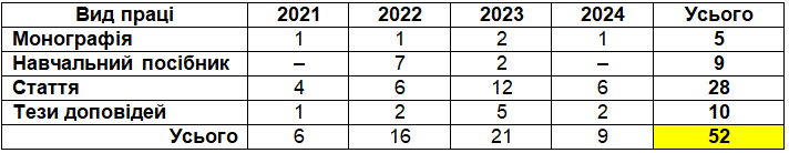 При цьому, що цікаво, за тематикою докторської протягом 4 років він опублікував аж 52 праці: 5 монографій, 9 навчальних посібників, 28 статей та 10 тез доповідей на конференціях. Також у 2020–2021 рр. побачили світ три навчальних посібника, що «додатково відображають наукові результати дисертації». Ну, раз «додатково», то рахувати їх не будемо, а розподіл по роках отих «основних» виглядає так: