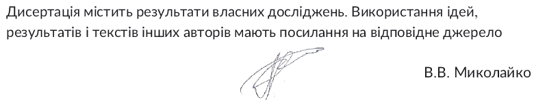 Слід зазначити, що в дисертації Миколайка «Списки використаних джерел» наведені наприкінці кожного розділу, а не після «Висновків».