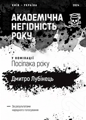 - Дмитро Лубінець, уповноважений Верховної Ради України з прав людини, за його «рекомендації» НАЗЯВО щодо плагіату (див. тут і тут);